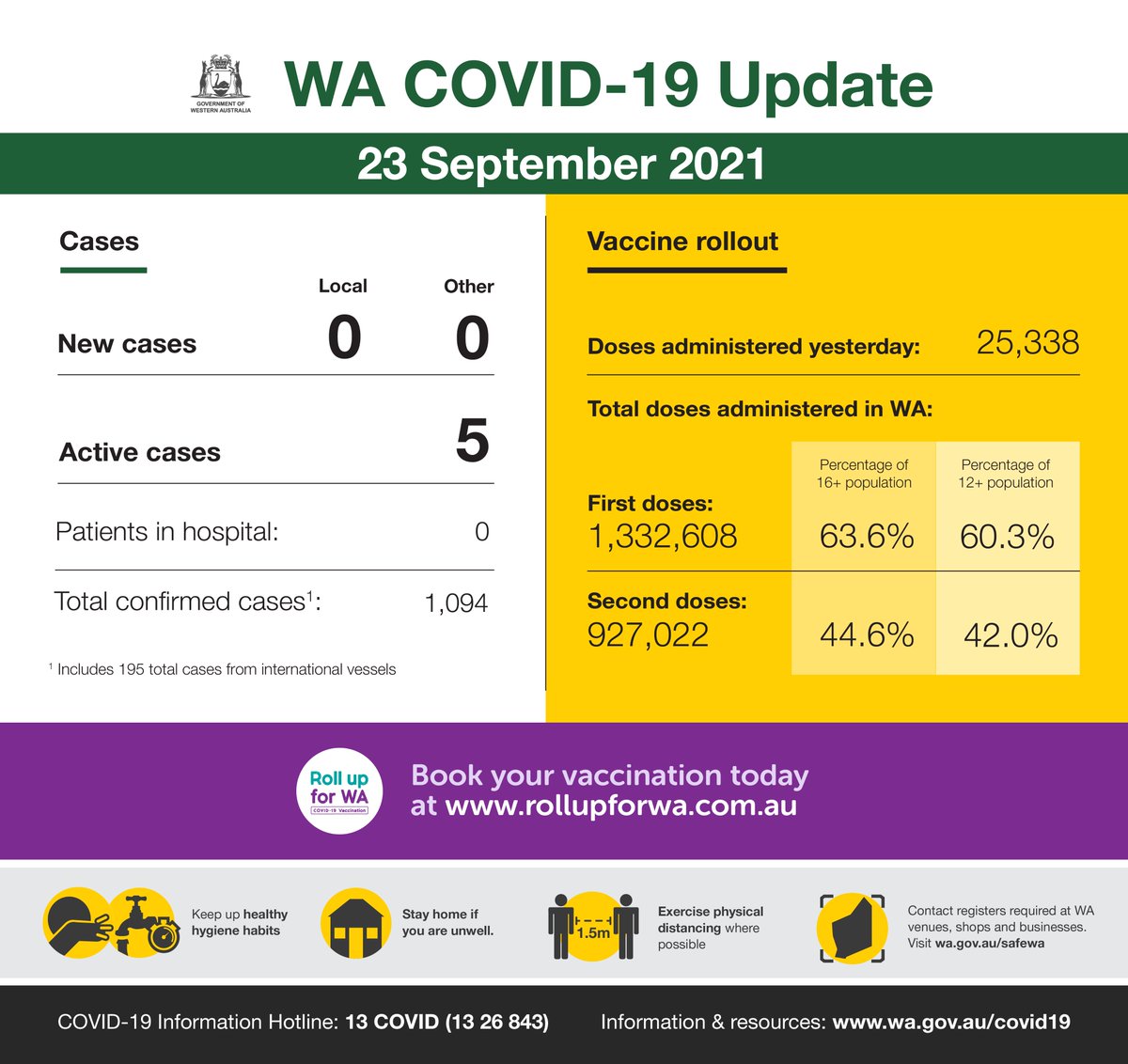 There are 14 active cases of which two are variants of concern. Mr McGowan said the absence of any new cases was a fantastic result in the wake of the snap lockdown announced on Friday. A list of the potential exposure locations are available on the WAgov website.